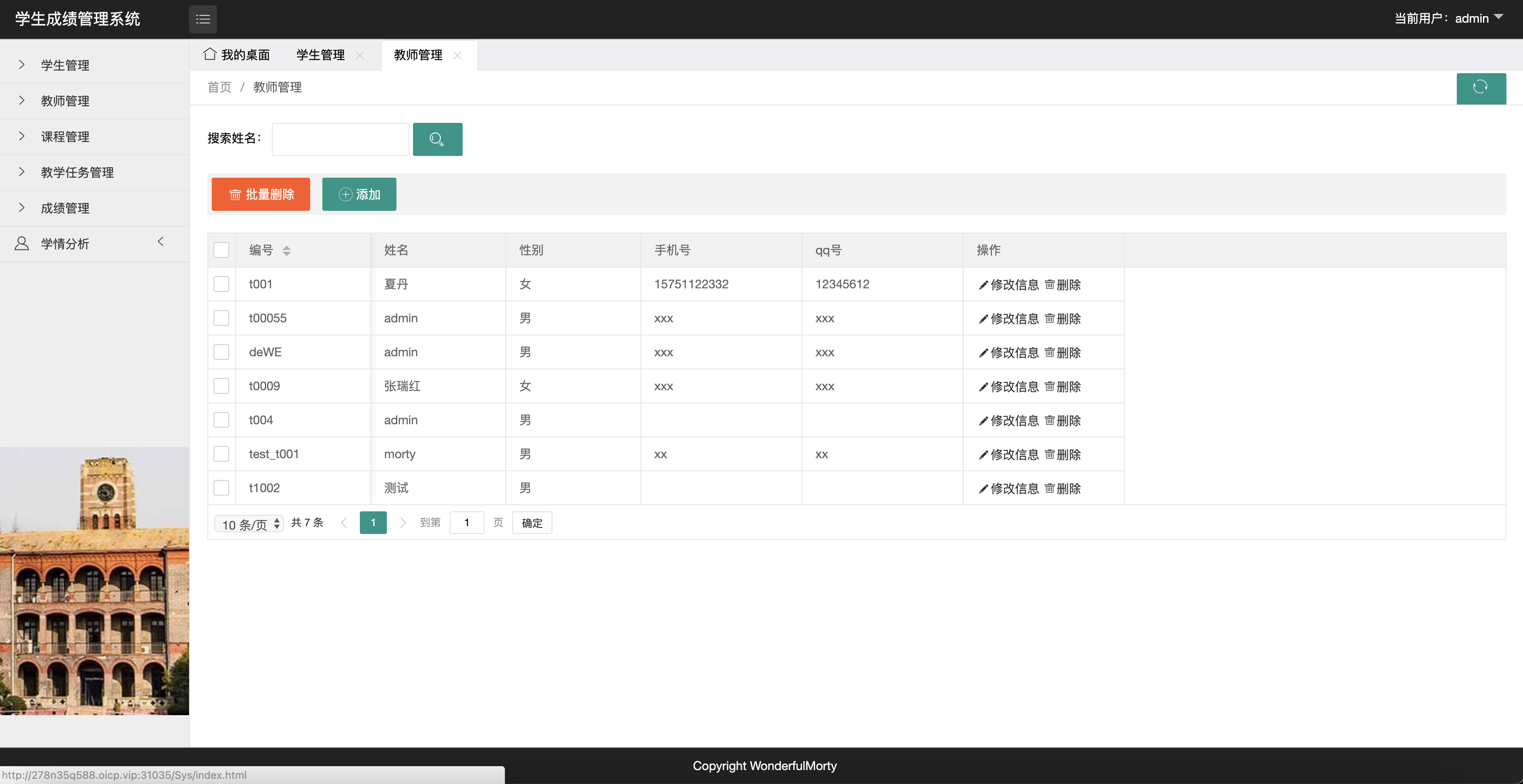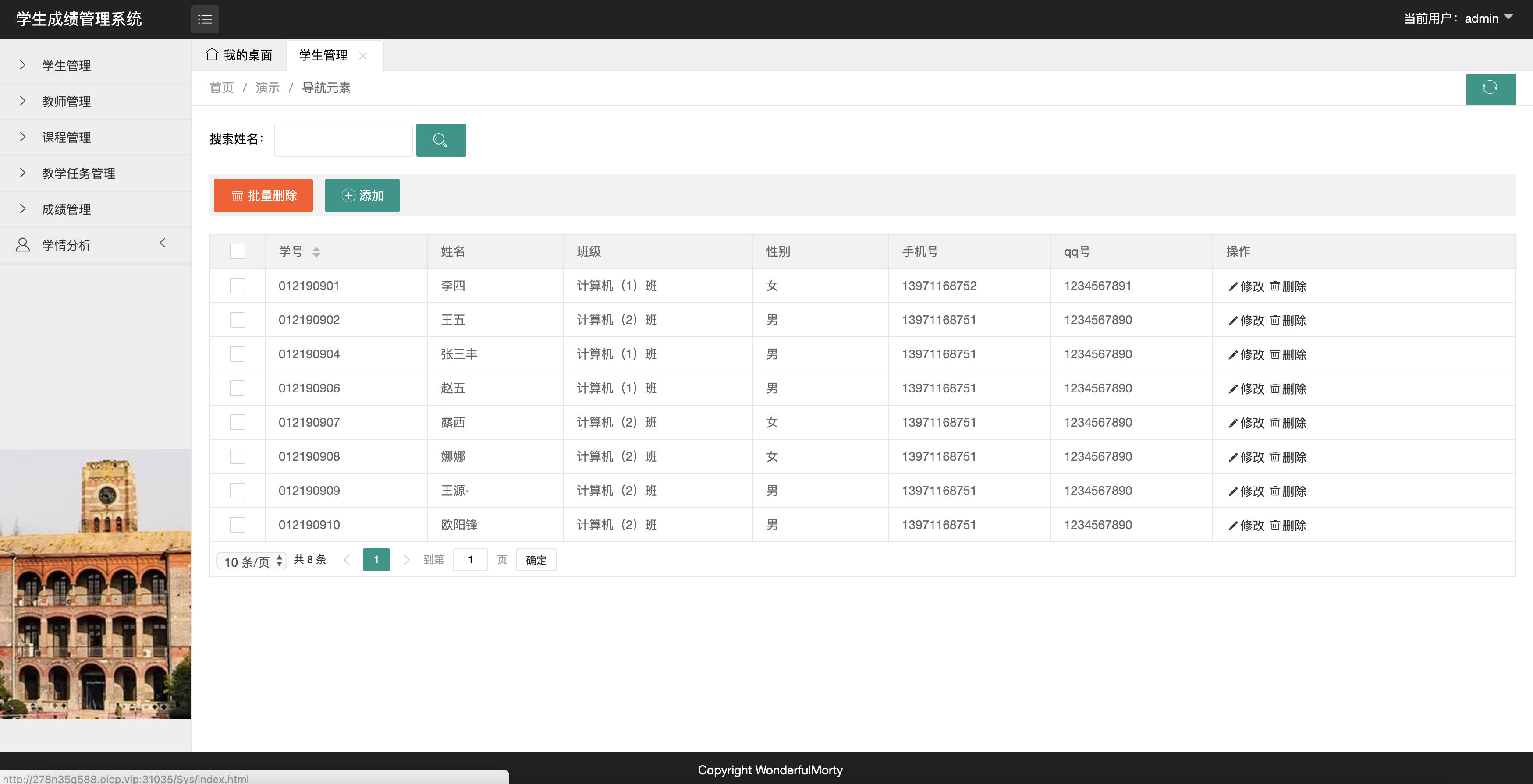学生管理,教师管理,课程管理,教学任务管理,成绩管理,学情分析